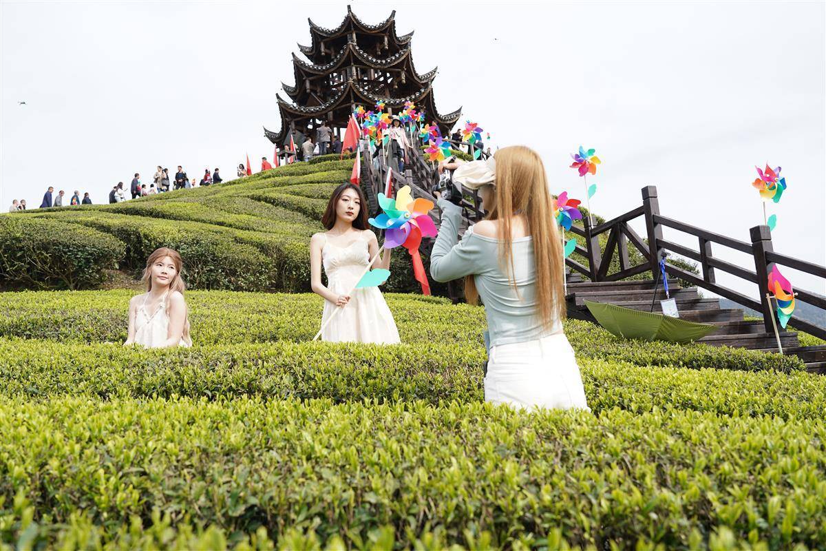 湖北日报讯(记者鲁腾、通讯员陈绪开、王法均)3月30日,宣恩县在伍家台贡茶文化旅游区的有机茶园里举办采茶大赛,吸引众多茶农和游客参与其中,山乡茶山欢声笑语。伍家台贡茶文化旅游区是开放式的国家4A级旅游景区,产出的伍家台贡茶是国家地理标志产品。每到春茶开采季,当地组织采茶、制茶、茶园山歌等体验活动,让人们到此感受贡茶文化的魅力。