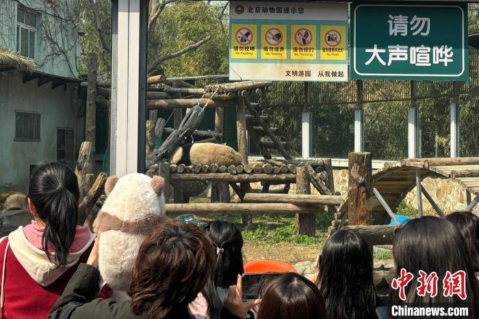 中新网北京4月2日电 (记者 徐婧) “来之前了解了熊猫的习性,不应该在参观时大声喧哗。”2日,在北京动物园大熊猫馆,来自天津的游客刘女士举起手中的熊猫“七仔”玩偶,以这种方式和对面的大熊猫“萌兰”互动。