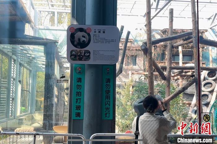 北京动物园大熊猫馆内,游客在安全围栏外参观。徐婧 摄
