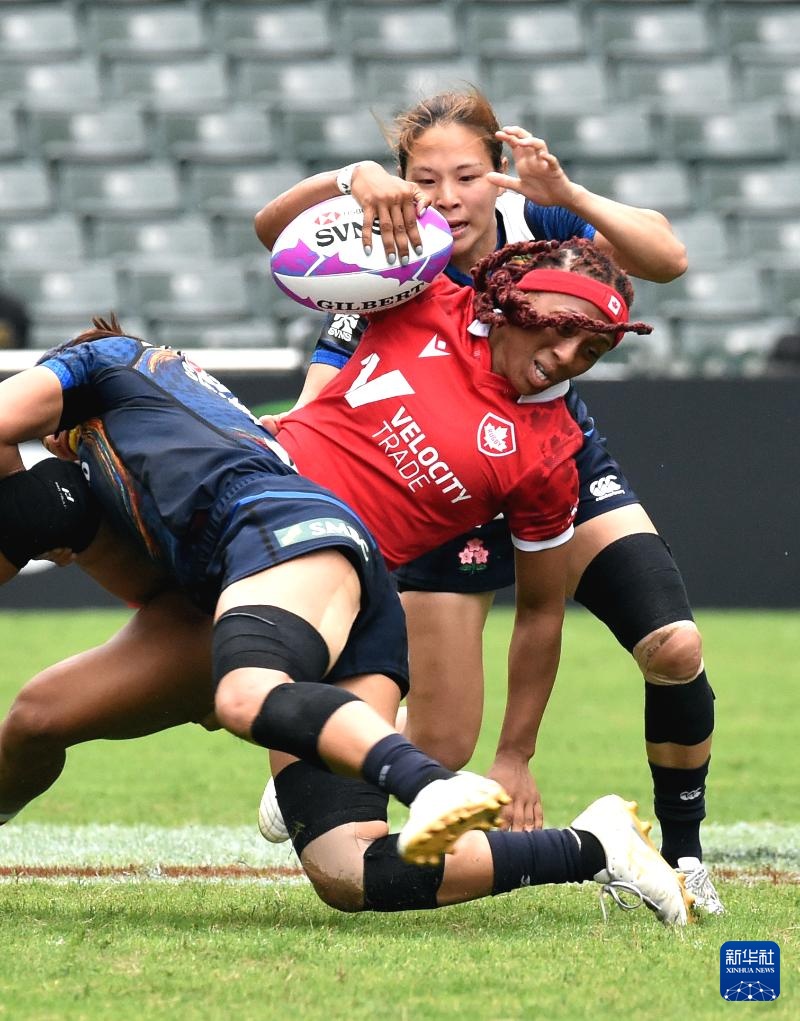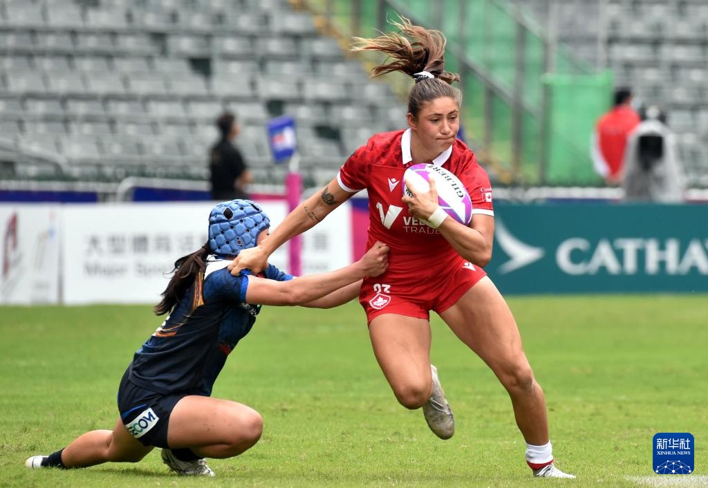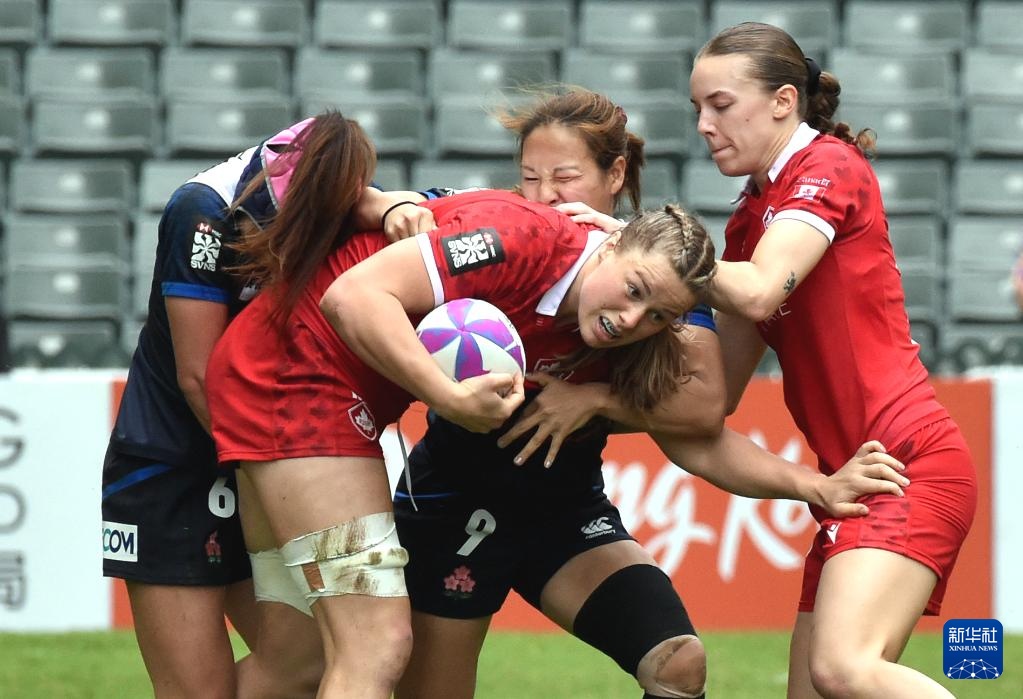 当日,在香港大球场举行的2024年香港国际七人橄榄球赛女子组比赛中,加拿大24比5战胜日本队。