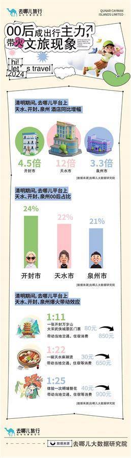 大学生是出游主力,前往各地,景区游玩必不可少。数据显示,清明假期景区游玩更火的前十城市为北京、上海、南京、西安、苏州、成都、扬州、武汉、重庆、洛阳。其中,去哪儿平台上武汉黄鹤楼、济南趵突泉公园、开封清明上河园、南京红山森林动物园、上饶婺源篁岭、洛阳龙门石窟、苏州寒山寺、乐山峨眉山、扬州瘦西湖、黄山风景区、乐山大佛、西安兵马俑景区门票同比去年增长超6倍,湖北省博物馆、大同云冈石窟、开封万岁山·大宋武侠城门票销量增长超23倍。