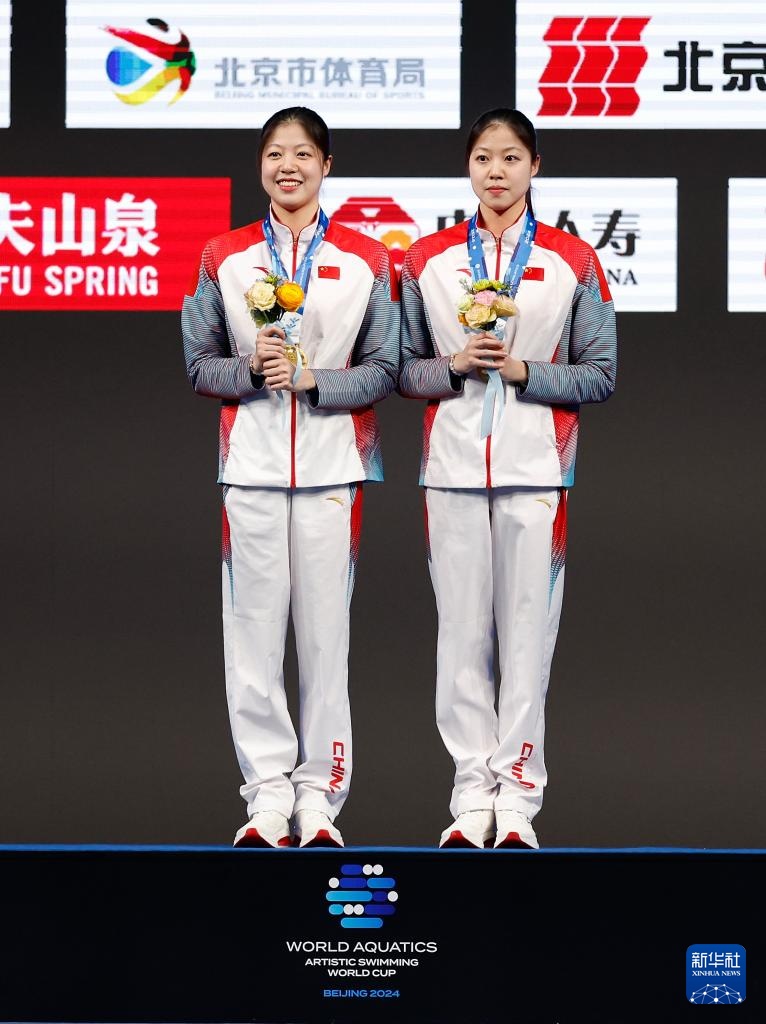 当日,在2024年花样游泳世界杯(北京站)女子双人技术自选比赛中,中国组合林彦含/林彦君以238.8985分的成绩获得冠军。