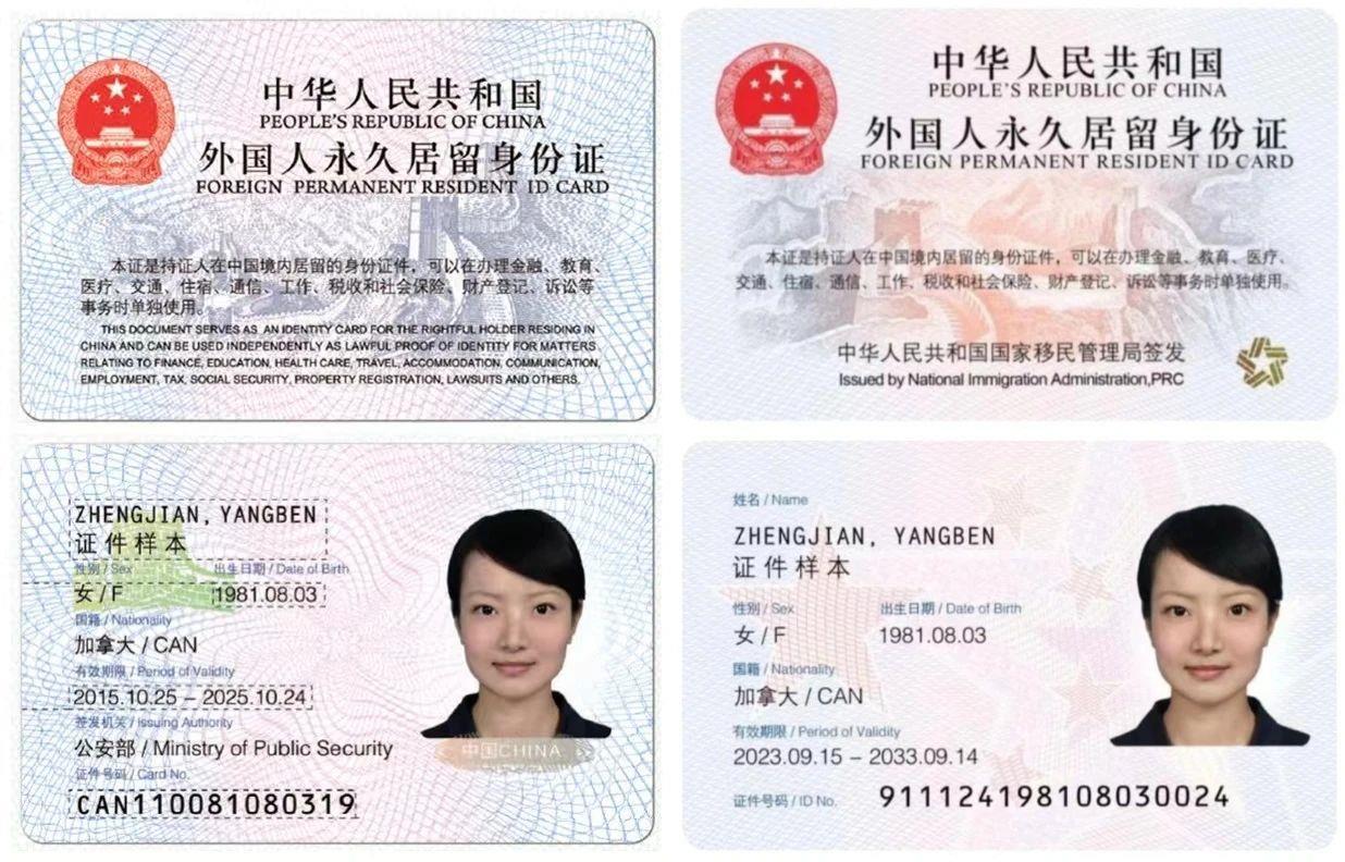 △左为2017年签发启用的前版永居证,右为2023年签发启用的“五星卡”。