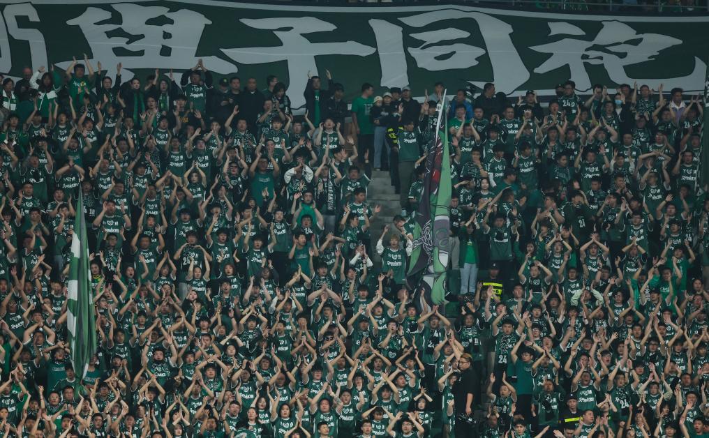 4月5日,北京国安队球迷在比赛中加油助威。当日,在2024赛季中国足球协会超级联赛第四轮比赛中,北京国安队主场2比2战平上海海港队。新华社记者 王楷焱 摄