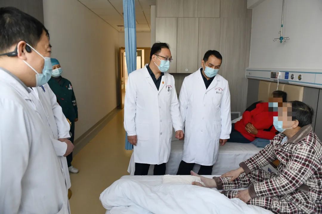 会议结束后,双方共同看望了由通用技术湖北航天医院与武汉大学中南医院接力救治成功的心脏骤停的患者,对其进行了联合查房。