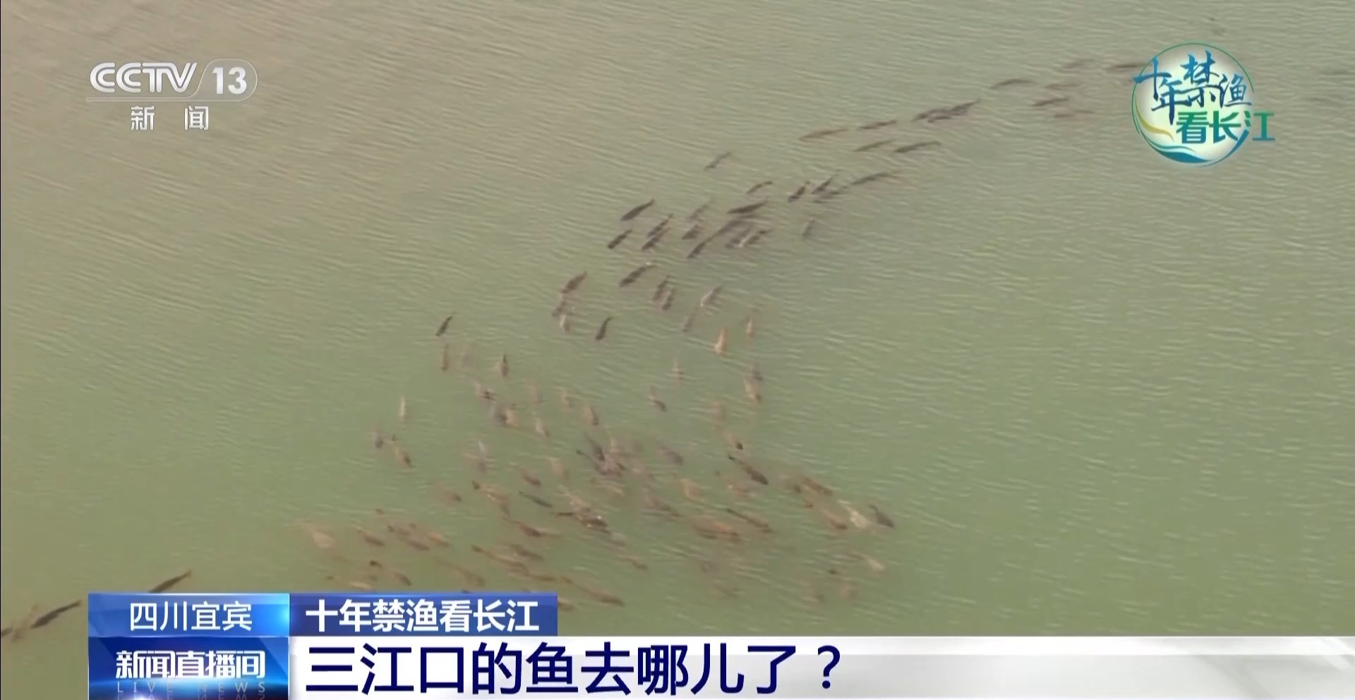 总台记者 蒋林:其实在我们一个月前来这里踩点的时候,在我身后的这个三江汇流处,真的肉眼可见的有很多鱼,但是当我再来宜宾准备直播的时候,就惊讶地发现,鱼没了!