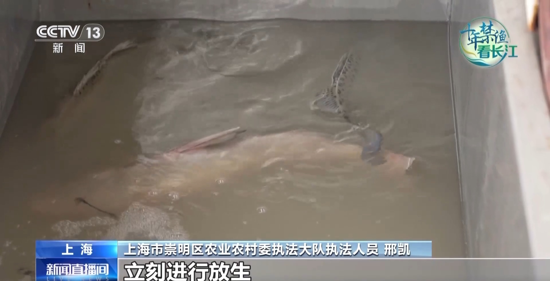 上海市崇明区农业农村委执法大队执法人员 邢凯:活的生物样本我们要立刻进行放生,死的可以留去做生物样本试验。特别是要现场称重,不允许他们流出一条到市场,一定要以项目单位进行保管。