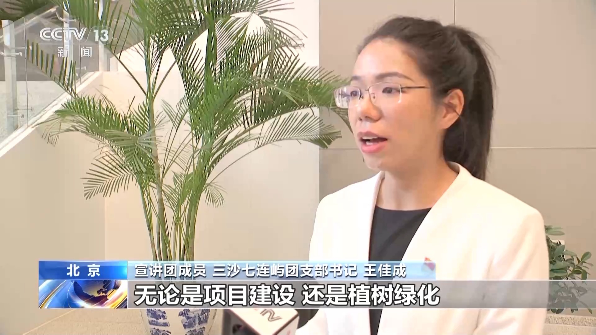 宣讲团成员 三沙七连屿团支部书记 王佳成:无论是项目建设、植树绿化,还是我们现在发展集体经济,我们带着渔民们积极投入其中,看着渔民们从低矮破旧的黑油毛毡房,搬到宽敞明亮的独栋小别墅。我看着渔民们笑脸越来越多,生活越来越幸福,我们会觉得,这就是我们的意义所在,就是我价值的所在。