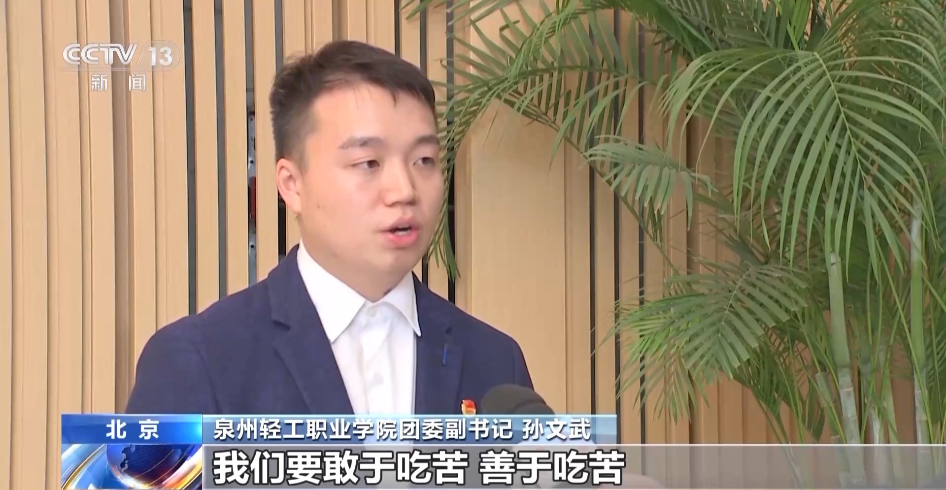 泉州轻工职业学院团委副书记 孙文武:同样身为青年,我们要敢于吃苦、善于吃苦,要把他们作为优秀榜样,抓住机遇、迎接挑战,不停地去磨炼自己的意志,为基层建设去赋能。