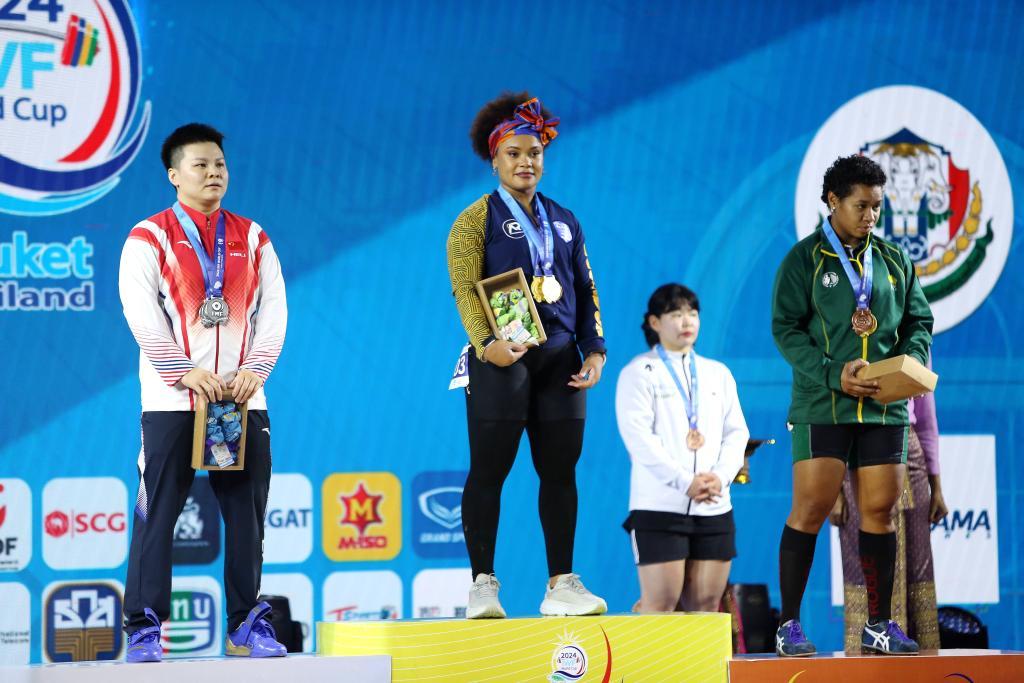 新华社泰国普吉4月9日电(记者林昊、王腾)9日在泰国普吉岛举行的2024年举重世界杯上,中国队选手汪周雨以抓举120公斤、挺举147公斤和总成绩267公斤获得女子81公斤级3枚银牌。