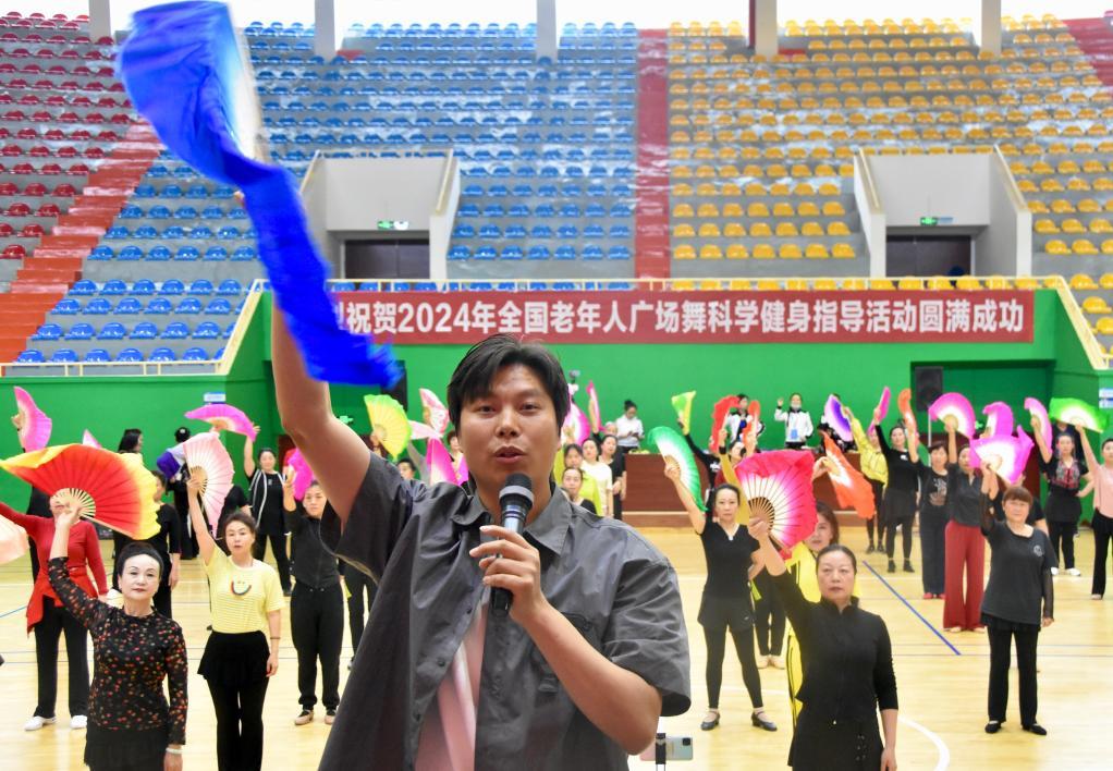 新华社西安4月9日电(记者郑昕、林胜概)9日上午,2024年全国老年人广场舞科学健身指导活动在陕西省咸阳市举行,来自23个省(自治区、直辖市)的130多名学员现场学习老年人广场舞最新规则和套路,把更规范的健身理念和技能传递给更多银发健身者。