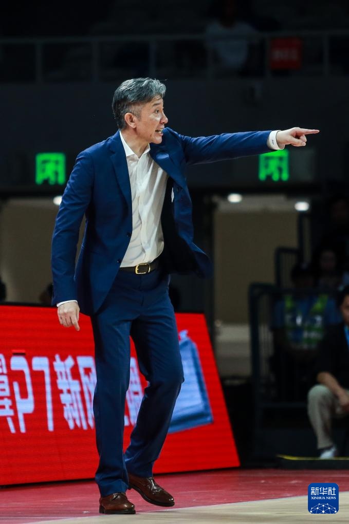 4月10日,深圳马可波罗队主教练郑永刚在场边指挥。新华社发(彭志刚摄)