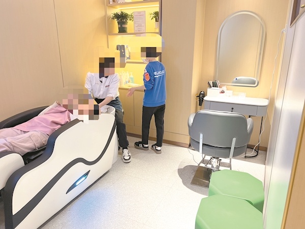 如何预约洗头?一位店员拿出平板电脑热情地介绍,用手机扫上面的二维码就能预约,不过由于前来体验的顾客较多,可能需要排会队,“现在前面还有10位顾客在排队,一小时可以洗两三位顾客,等到号了会给您打电话。”