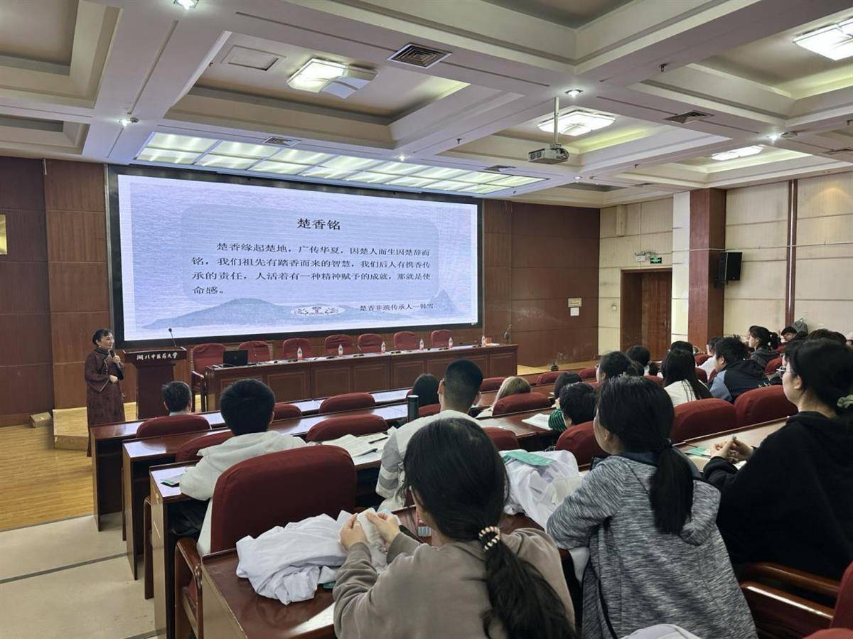 湖北日报讯(记者农新瑜、通讯员乔乔)携手共建研究中心,推进传统非遗文化的传承发展。4月11日,湖北中医药大学基础医学院与武汉非遗项目楚香传承人韩雪团队一行举行签约仪式,并在该校黄家湖校区图书馆学术报告厅开展专题讲座,让近200名师生近距离感受了非遗文化的独特魅力。