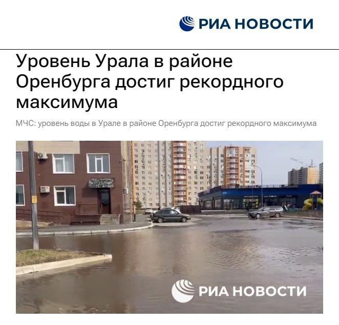 奥伦堡市市长萨尔明12日在社交媒体上发文称,“城市里已拉响警报。这不是演习。大规模疏散正在进行!奥伦堡的洪水形势极其危险。过去10个小时里,乌拉尔河水位上涨了40厘米,现在达到1143厘米。这很危险。”