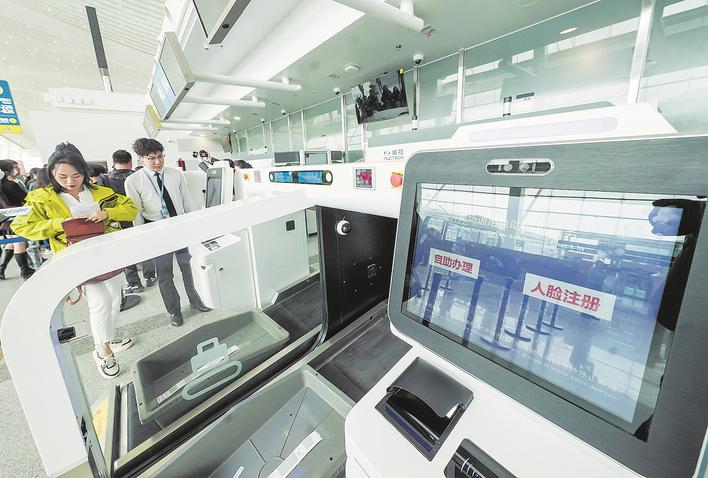 据介绍,T2航站楼共有自助设备112台套,值机区域包含32个自助行李托运柜台。不同于T3航站楼的设备,T2航站楼的自助设备增加了人脸注册功能,智慧化程度更高。