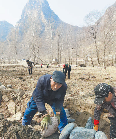 离开上庄村,沿河来到龙门乡龙门村,一些村民在村口山坡上修复土地。村民王定国有1亩多地,在坡上分成3片,最小的一片只能站下3个人,地边石堰被冲出两个豁口,他把散落的石头捡回去砌好。“堵上豁口,就能保住这3片地,赶在4月底种玉米。”全村已修复80多亩土地,村民备好了玉米种子,“大伙儿憋着一股劲,把去年的收成扳回来。”