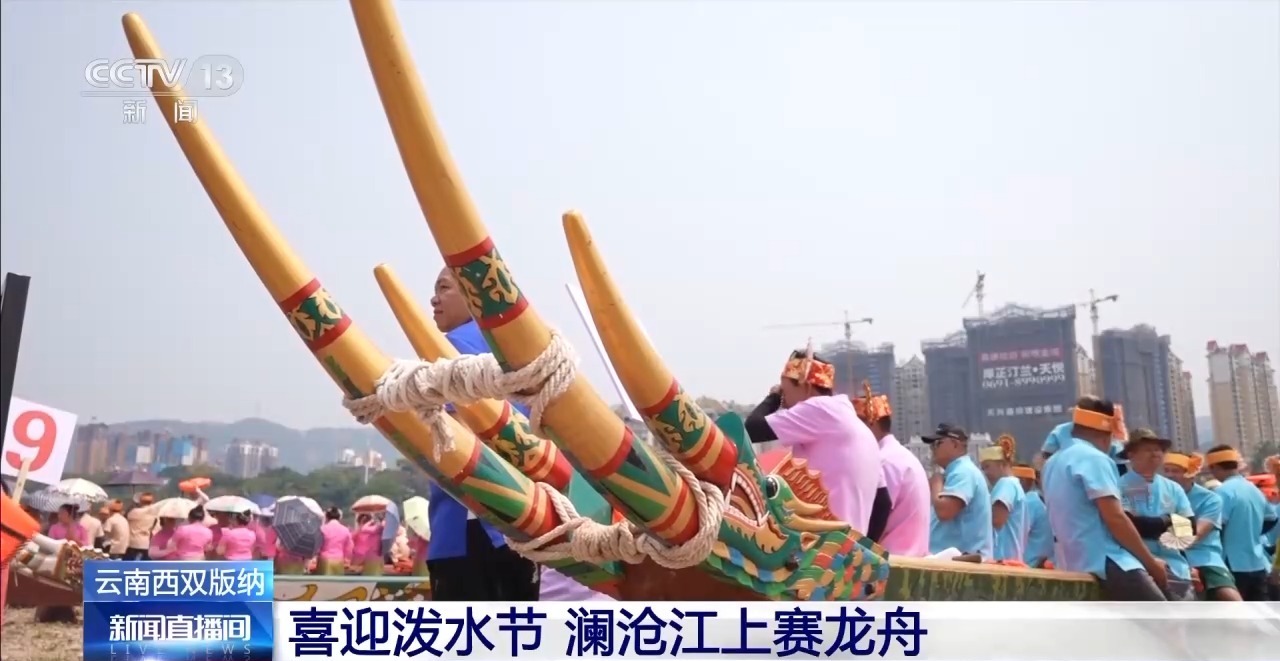 总台记者 齐鑫:每年泼水节期间,当地群众都会相聚在澜沧江,举办一场热热闹闹的赛龙舟活动。今天的最高气温已经达到了38℃,但是依然没有阻挡住人们的热情,现场已经是人山人海,有乘坐飞机、高铁,或者自驾前来的外地游客,也有搭乘中老铁路从老挝来的国外游客。据初步统计,今天大约两三万名观众来到这里,一睹精彩的赛龙舟活动。