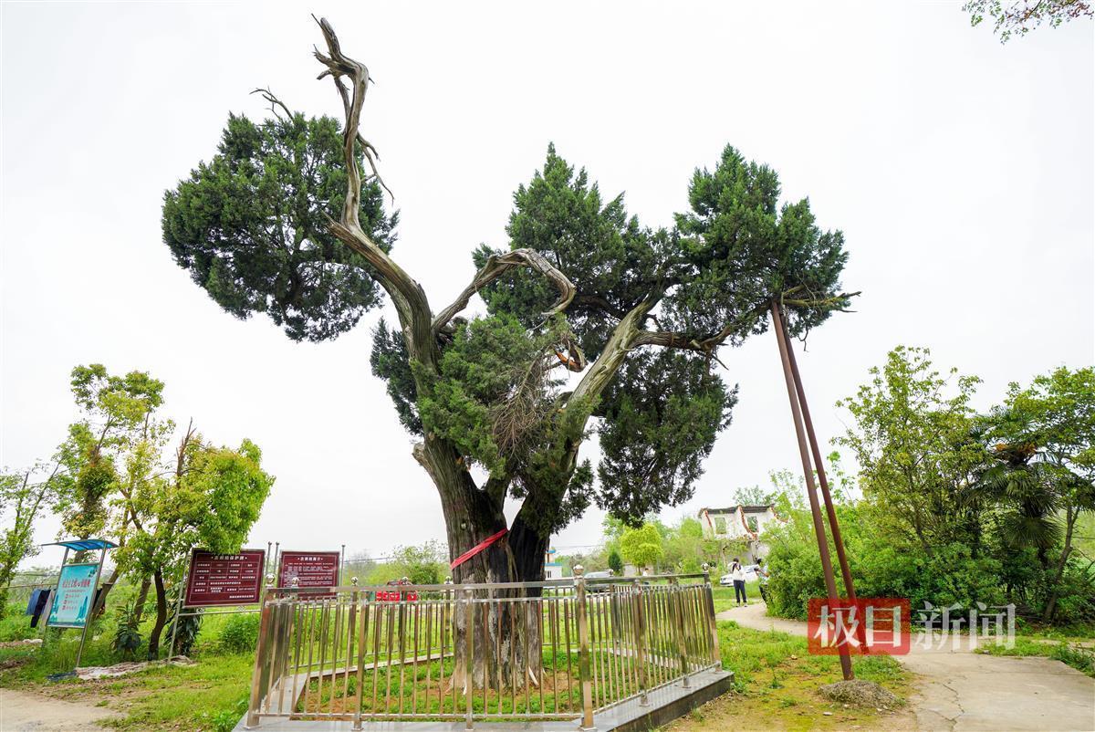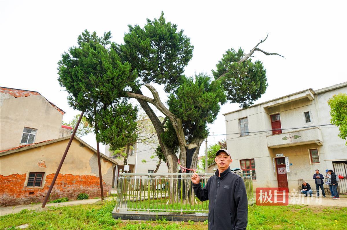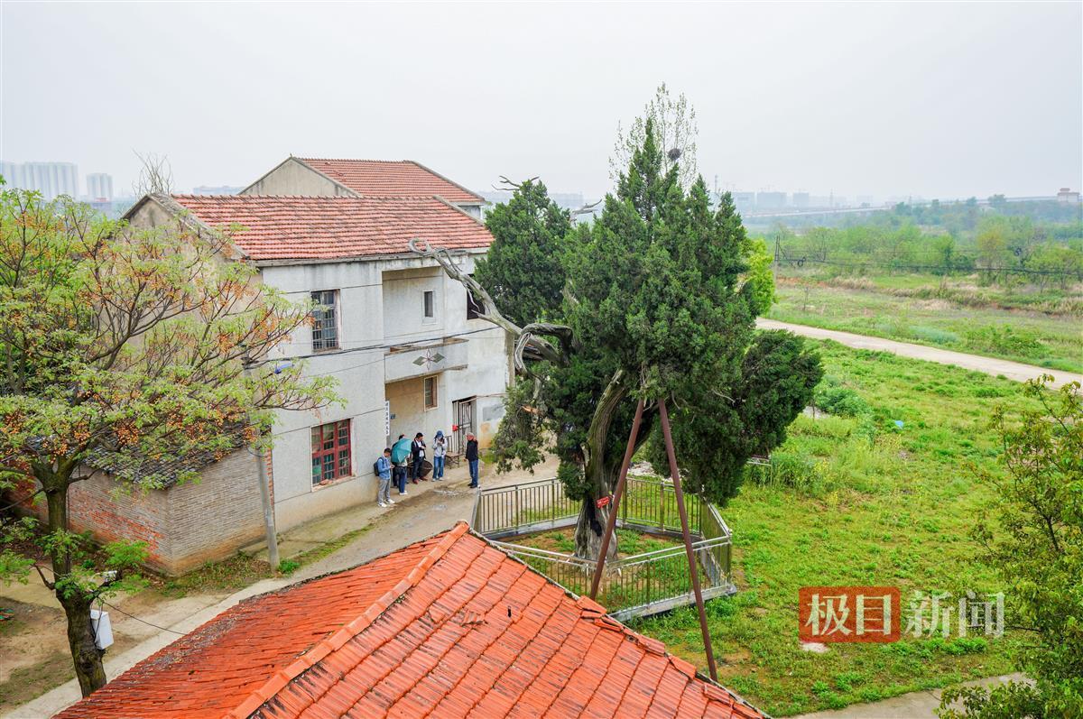 夏其洪爹爹告诉极目新闻记者,这里的小地名叫松林岗,在古树不远处过去有两座不高的小山岗,长满松树,后来山岗被挖。此地原来有两棵这样的刺柏,以前两棵刺柏都长得枝繁叶茂。一到夏天,村民们就会围坐在树冠下乘凉聊天。在上世纪70年代,其中一棵刺柏死了,只剩下眼前的这棵刺柏。