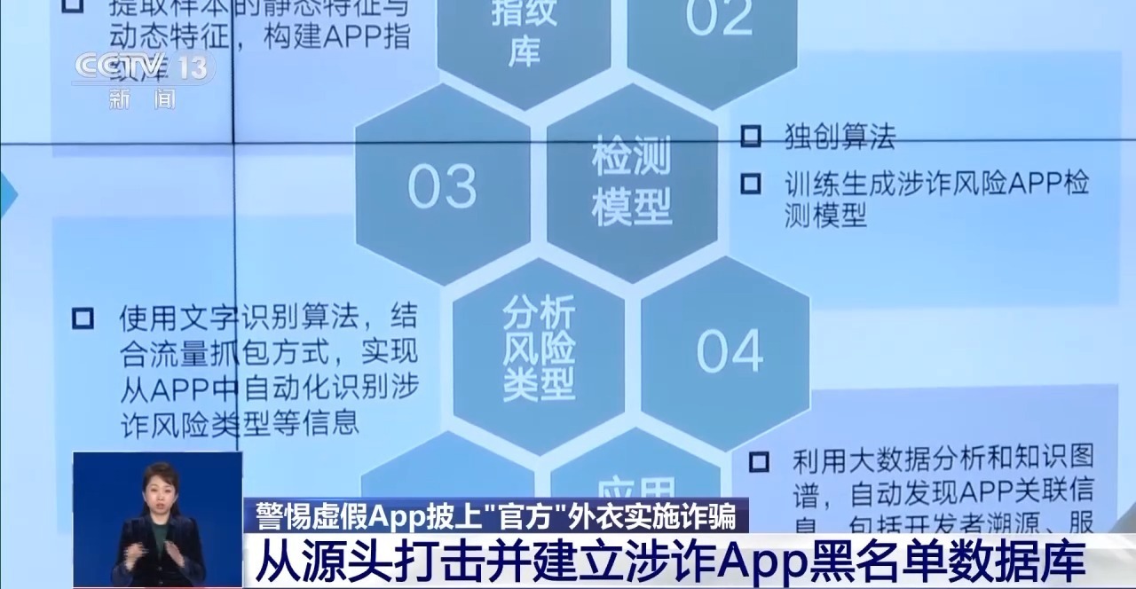 中国计算机学会安全专业委员会数字经济与安全工作组成员 方宇:随着技术手段的不断迭代,诈骗分子利用工具,批量地生成涉诈App,已形成运作熟练的黑色产业链。这些涉诈App经常更换名称图标,进入之后多次跳转服务后台,也使得及时的监测和发现的难度更高。另外不法分子在实施诈骗时,经常配合一些比如投资理财、国家政策项目等场景铺设,也使得诈骗活动更加难以防范。