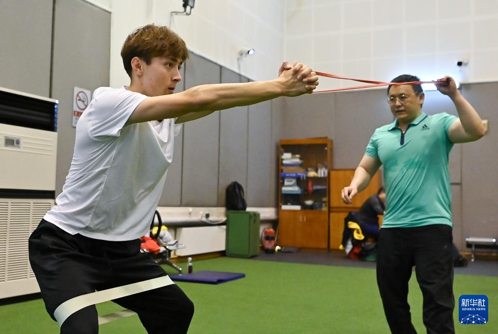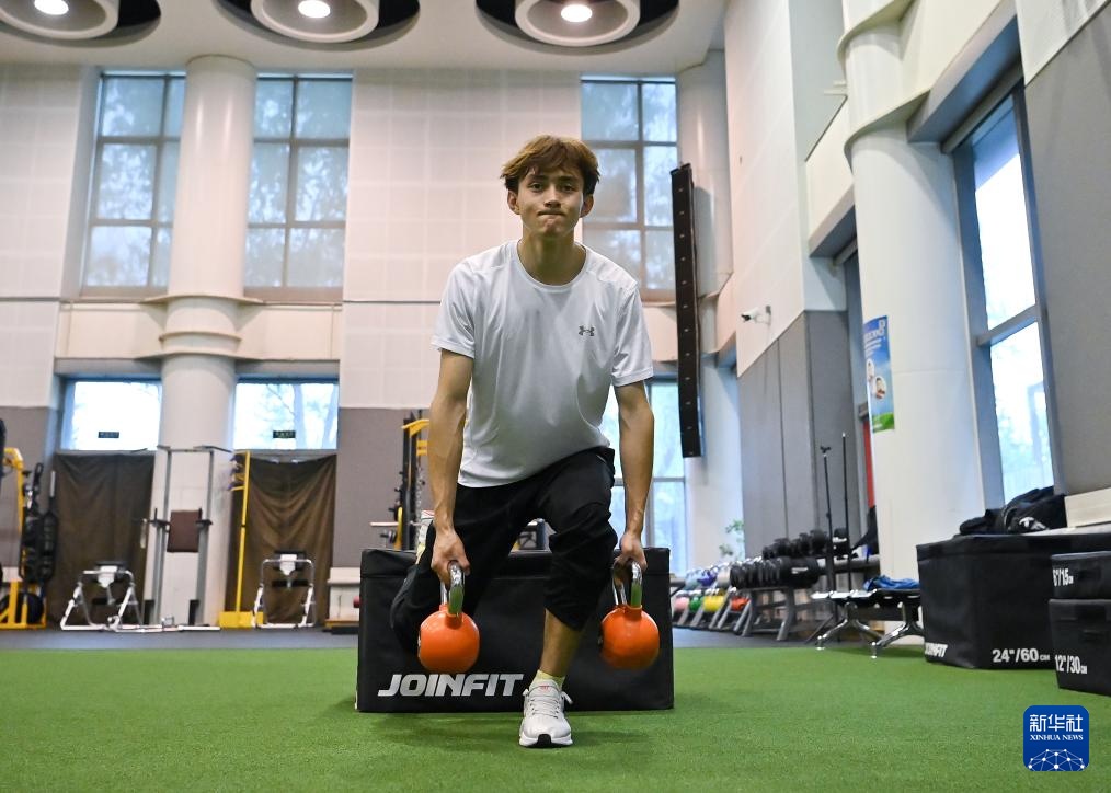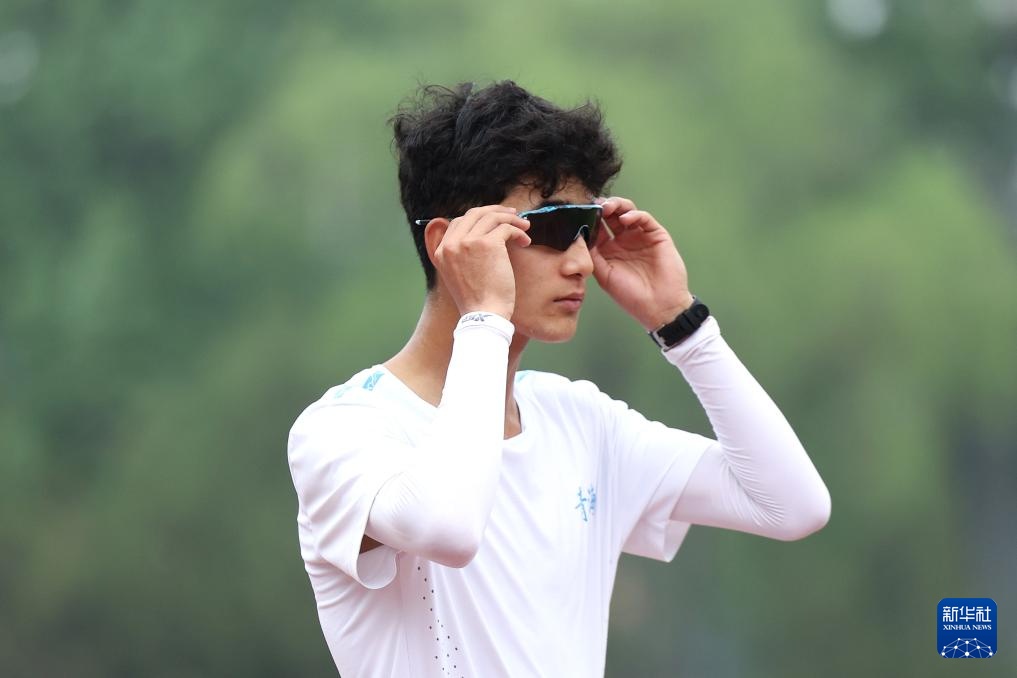 4月14日,参加集训的田径运动员艾力西尔·吾买尔在体能训练前。新华社记者 宋彦桦 摄