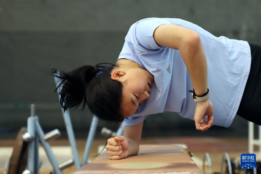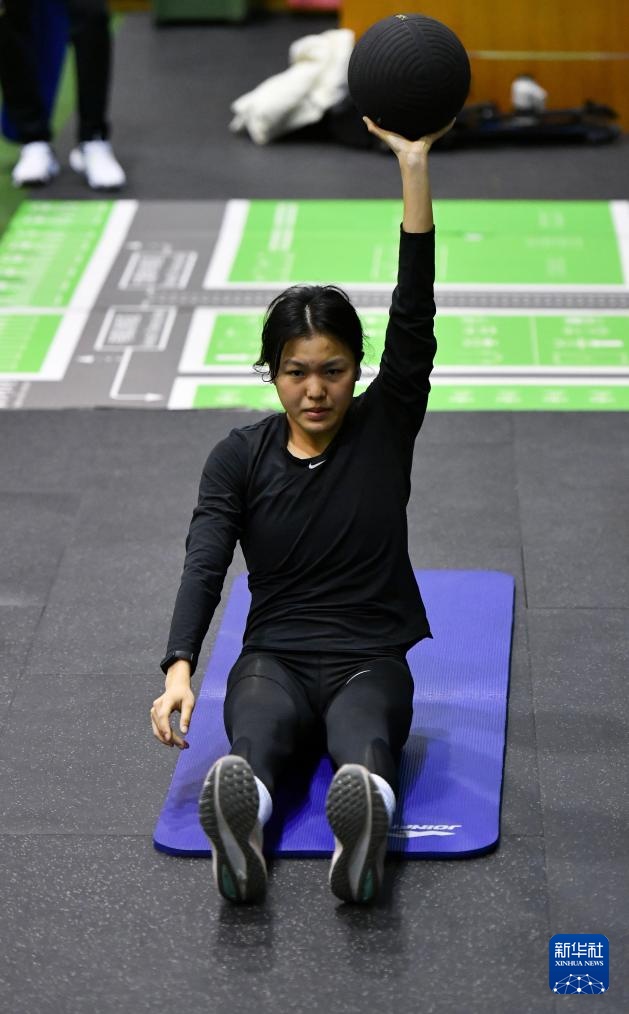 4月14日,参加集训的田径运动员吴彬彬在体能训练中。新华社记者 宋彦桦 摄