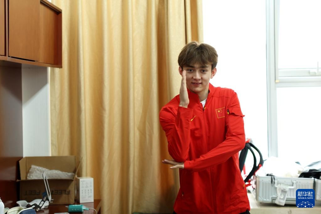 4月14日,参加集训的田径运动员艾力西尔·吾买尔在运动员公寓内。新华社记者 李明 摄