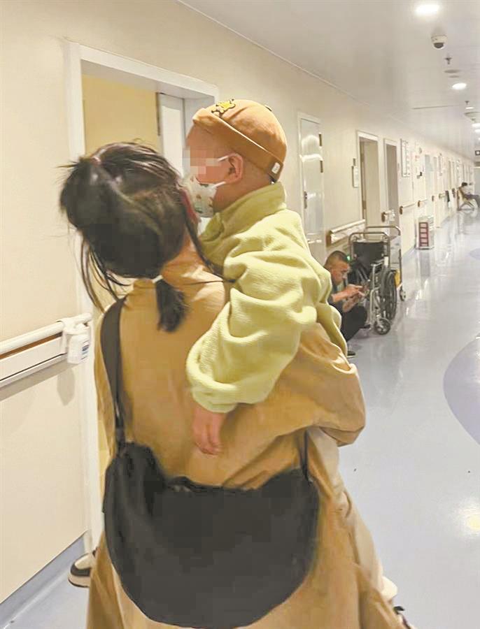 儿子确诊恶性肿瘤那天,王茜带着他从医院出来。在医院门口,孩子想要一个玩具,王茜买给了他,抱着他大哭了起来。