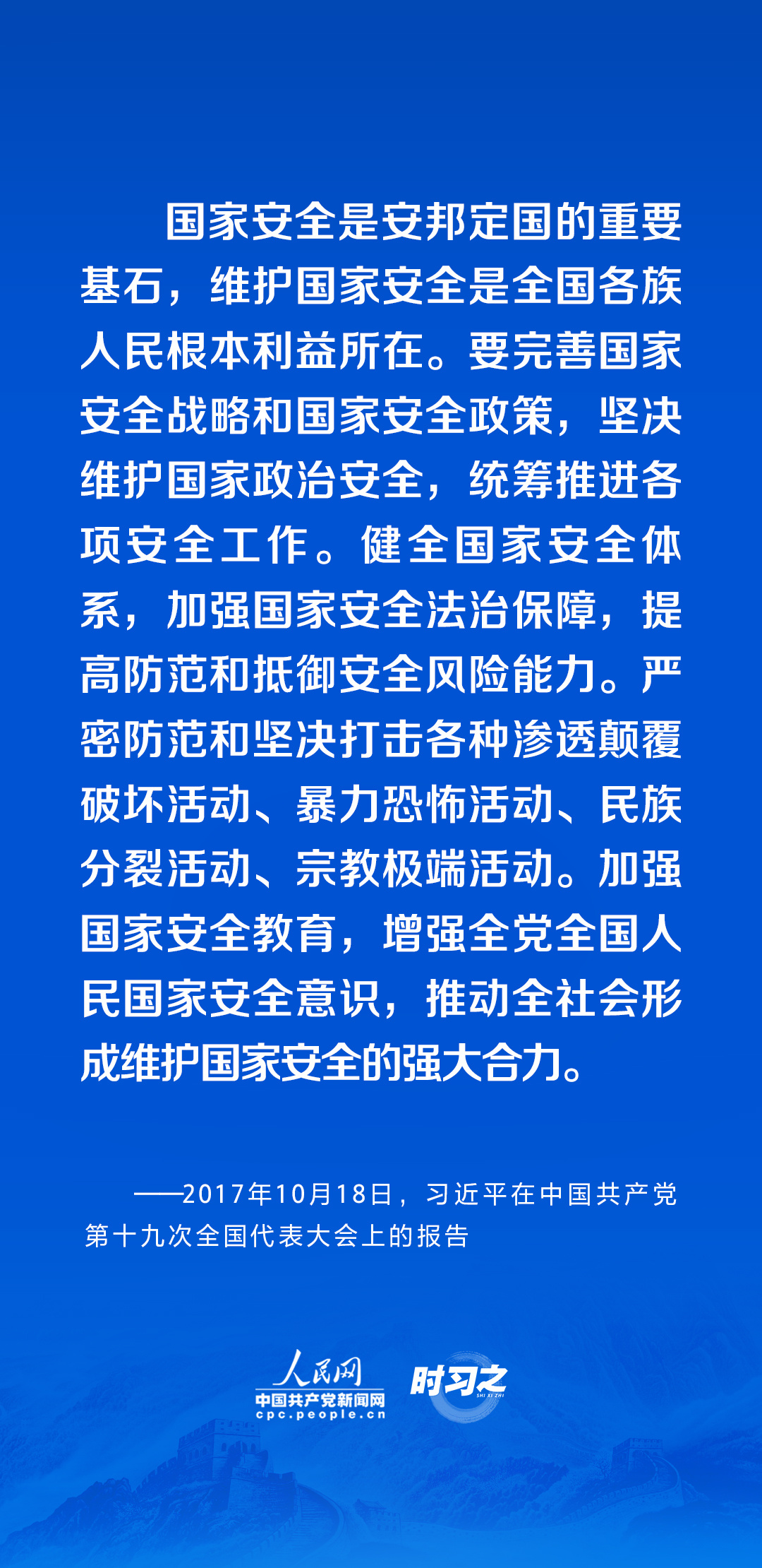国家安全是民族复兴的根基,社会稳定是国家强盛的前提。习近平总书记始终把国家安全作为头等大事,创造性提出总体国家安全观,为筑牢国家安全人民防线汇聚起强大力量。