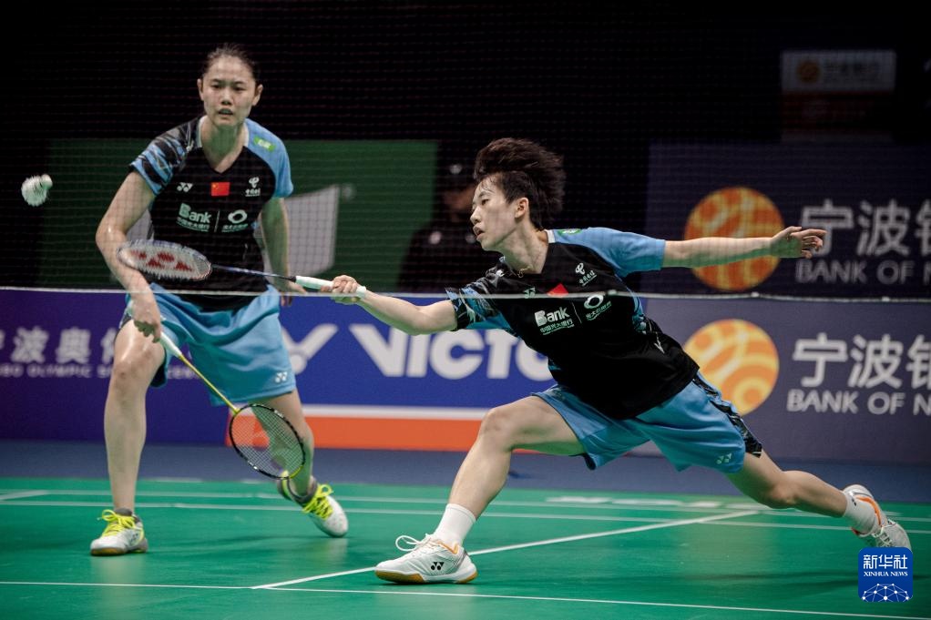 4月14日,张殊贤(右)/郑雨在比赛中。新华社记者 江汉 摄