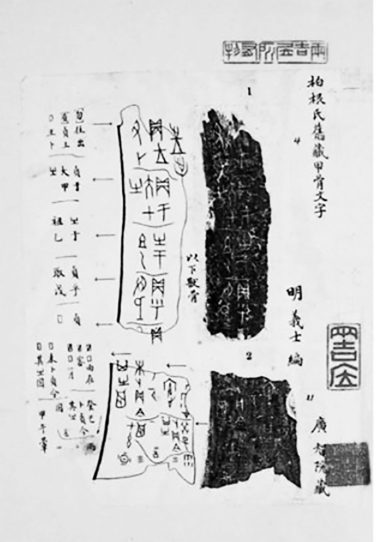 1917年,明义士临摹和出版了《殷虚卜辞》一书,收录甲骨摹本共2369片,后来又出版了《柏根氏旧藏甲骨文字》《商代的文化和宗教思想》等。中国甲骨学家董作宾曾称赞,明义士是甲骨文研究中的“西方学者第一人”。