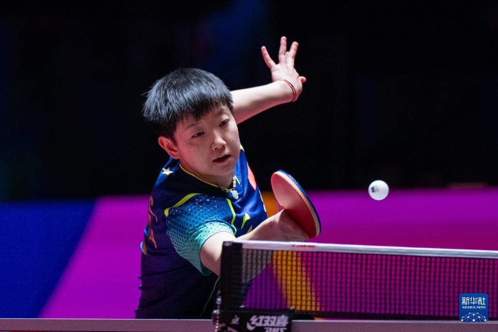 4月15日,孙颖莎在比赛中回球。新华社记者 张金加 摄