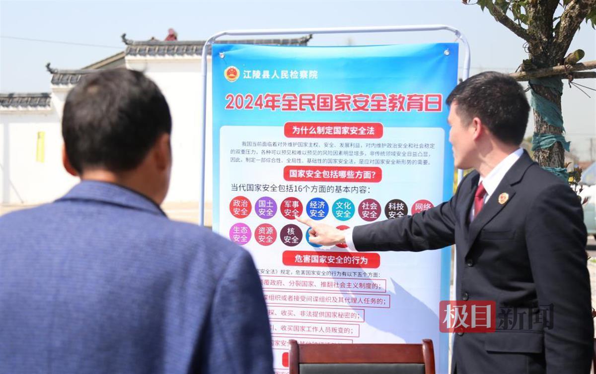 “创新宣传方式,以群众喜闻乐见的方式,加大法治宣传力度,深入推动国家安全教育落地生根。”江陵县人民检察院相关负责人说,将持续开展总体国家安全观教育,以此增强群众依法维护国家安全的责任感和使命感,在全社会积极营造维护国家政治安全和社会大局稳定的良好法治氛围。