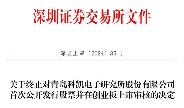 日前,科凯电子向深交所提交了《青岛科凯电子研究所股份有限公司关于撤回首次公开发行股票并在创业板上市申请文件的申请》,保荐人向深交所提交了《中国国际金融股份有限公司关于撤回青岛科凯电子研究所股份有限公司首次公开发行股票并在创业板上市申请文件的申请》。根据《深圳证券交易所股票发行上市审核规则》第六十二条的有关规定,深交所决定终止对科凯电子首次公开发行股票并在创业板上市的审核。