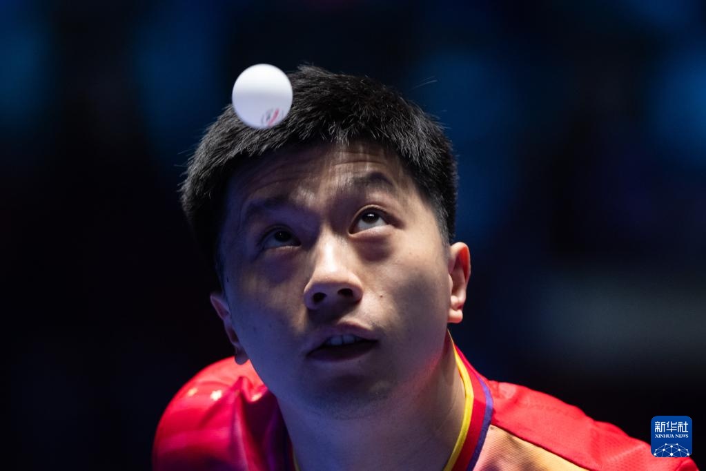 4月17日,马龙在比赛中回球。新华社记者 张金加 摄