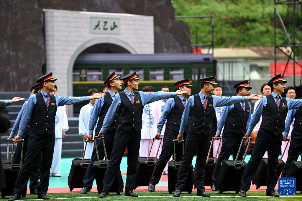 4月18日,铁路职工在开幕式上表演。