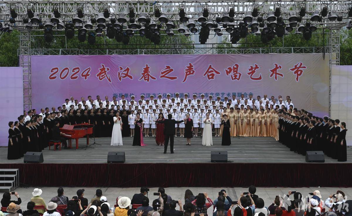 湖北日报讯(记者农新瑜、通讯员韦绪华、范泽生)草长莺飞,歌声嘹亮。4月18日下午,2024年武汉“春之声”合唱艺术节在汉口江滩大舞台拉开帷幕。从18日至21日,连续四天,来自武汉各年龄层的79支优秀合唱团队将先后登上舞台,精彩演绎120余首风格题材多样的合唱作品,唱响大武汉,讴歌新时代,歌唱伟大的党和祖国。