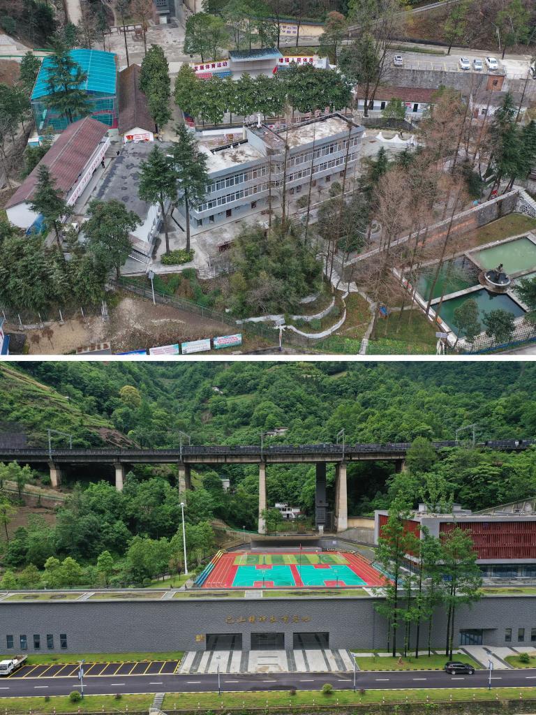 巴山站运动场地的今昔对比图。