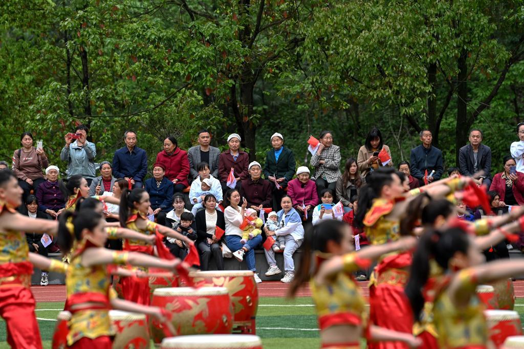 4月18日,当地群众观看开幕式表演。新华社记者 邹竞一 摄