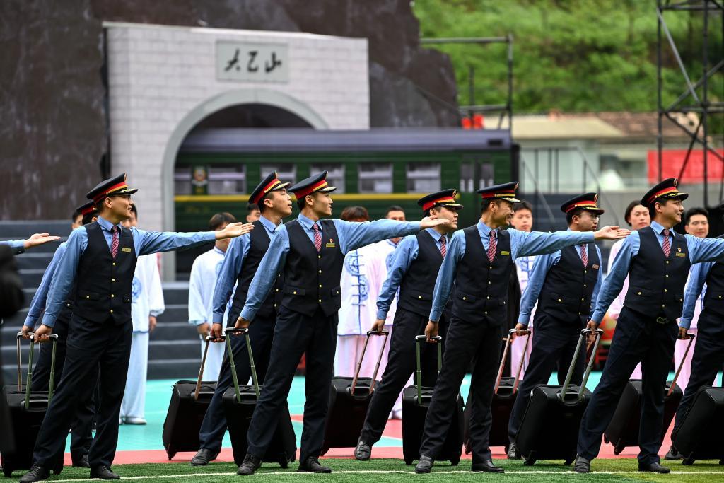 4月18日,铁路职工在开幕式上表演。新华社记者 邹竞一 摄