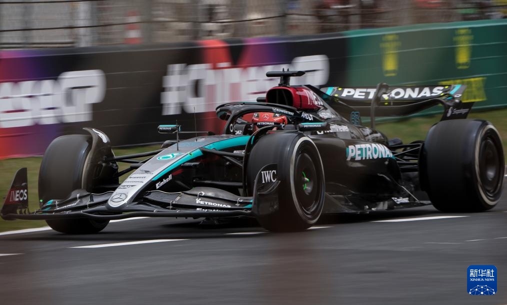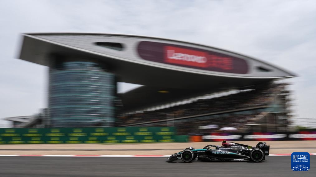 4月19日,梅赛德斯车队英国车手拉塞尔在比赛中。新华社记者 贺长山 摄