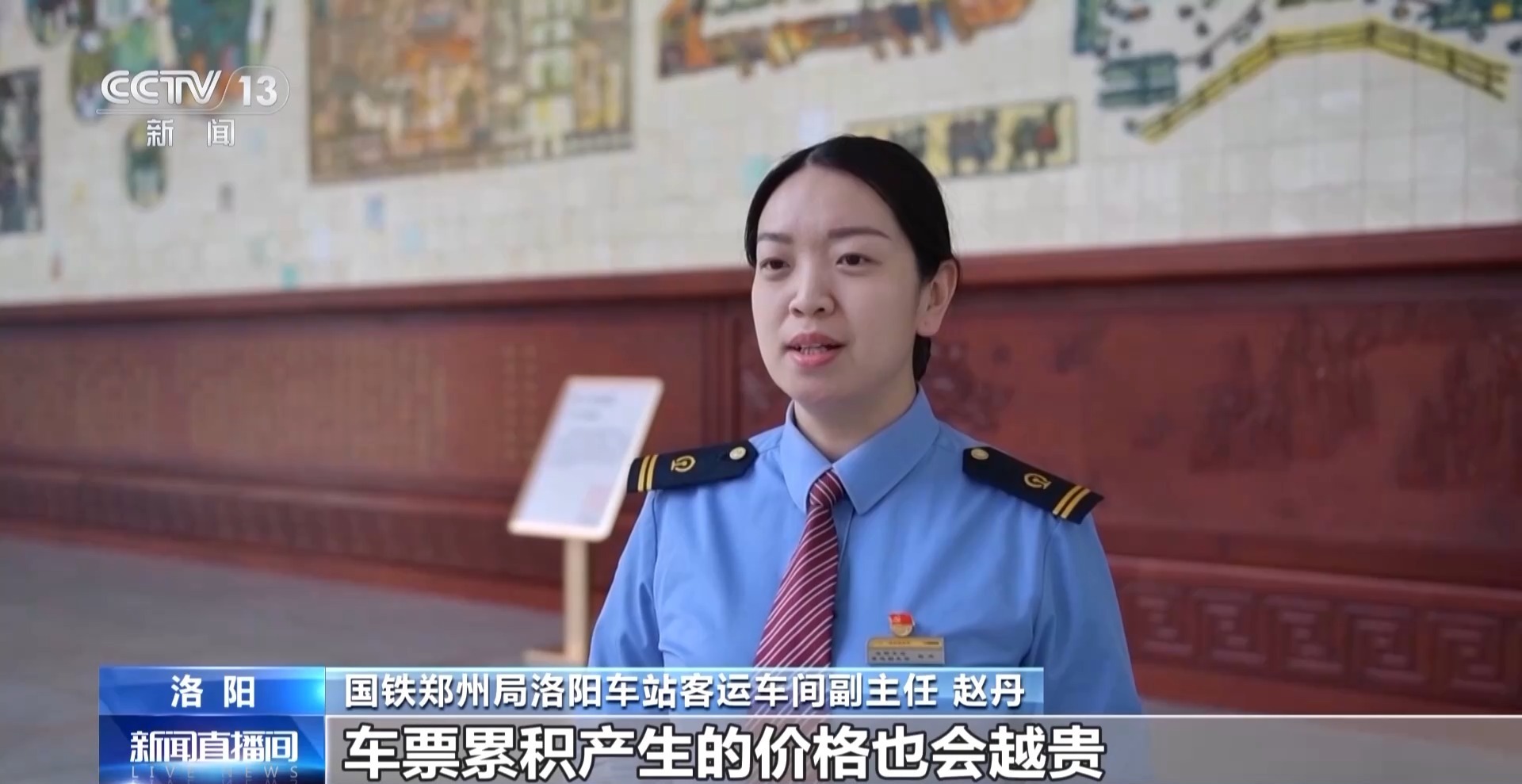 国铁郑州局洛阳车站客运车间副主任 赵丹:一般换乘次数越多,车票累积的价格也会越贵。旅客在中转换乘时,要尽量选择车次更多的大站作为换乘车站,这样可以增加换乘的成功率,减少换乘次数,避免产生过多的出行费用。