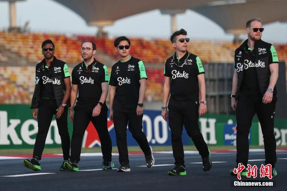 周冠宇(中)赛前踩场。中新网记者 张亨伟 摄