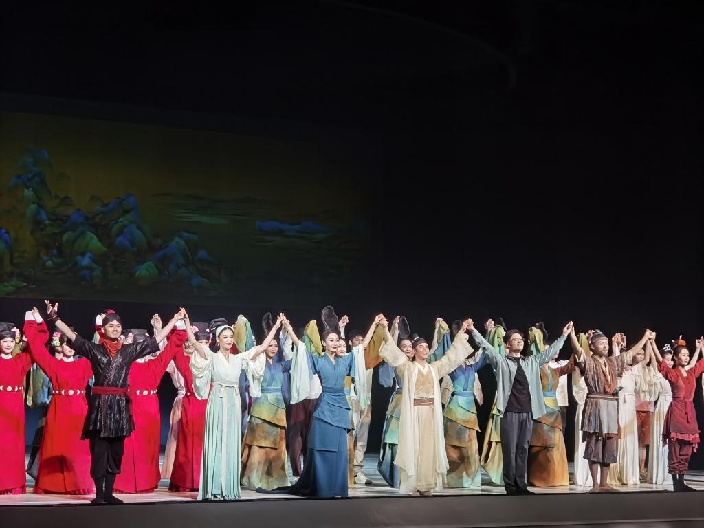 2024年4月17日《只此青绿》第500场演出在上海文化广场上演。图为主要演员谢幕。新华社记者许晓青 摄