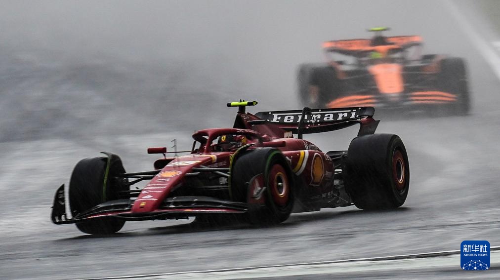 4月19日,法拉利车队西班牙车手赛恩斯(前)在比赛中。他最终排名第五。新华社记者 夏一方 摄