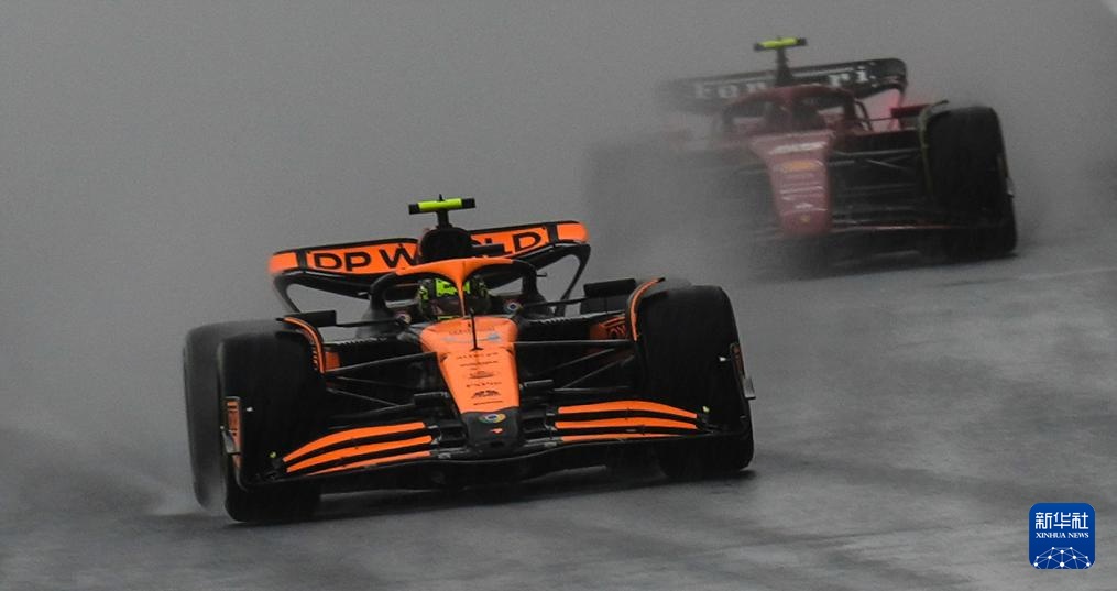 4月19日,迈凯伦车队英国车手诺里斯(前)在比赛中。他最终排名第一。新华社记者 夏一方 摄