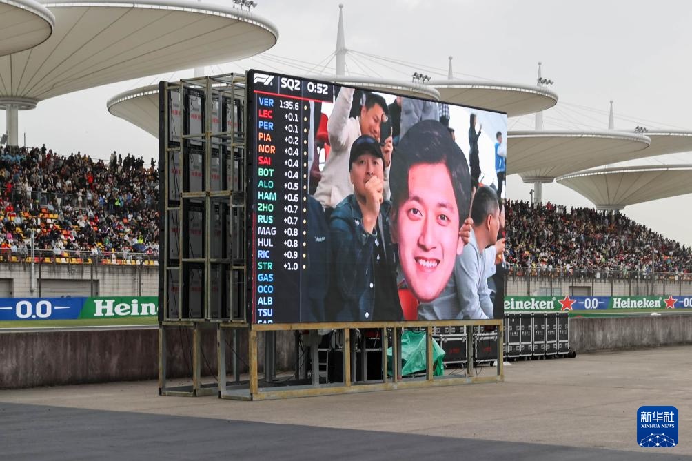 4月19日,观众为索伯车队中国车手周冠宇加油。周冠宇最终排名第十。新华社记者 王翔 摄