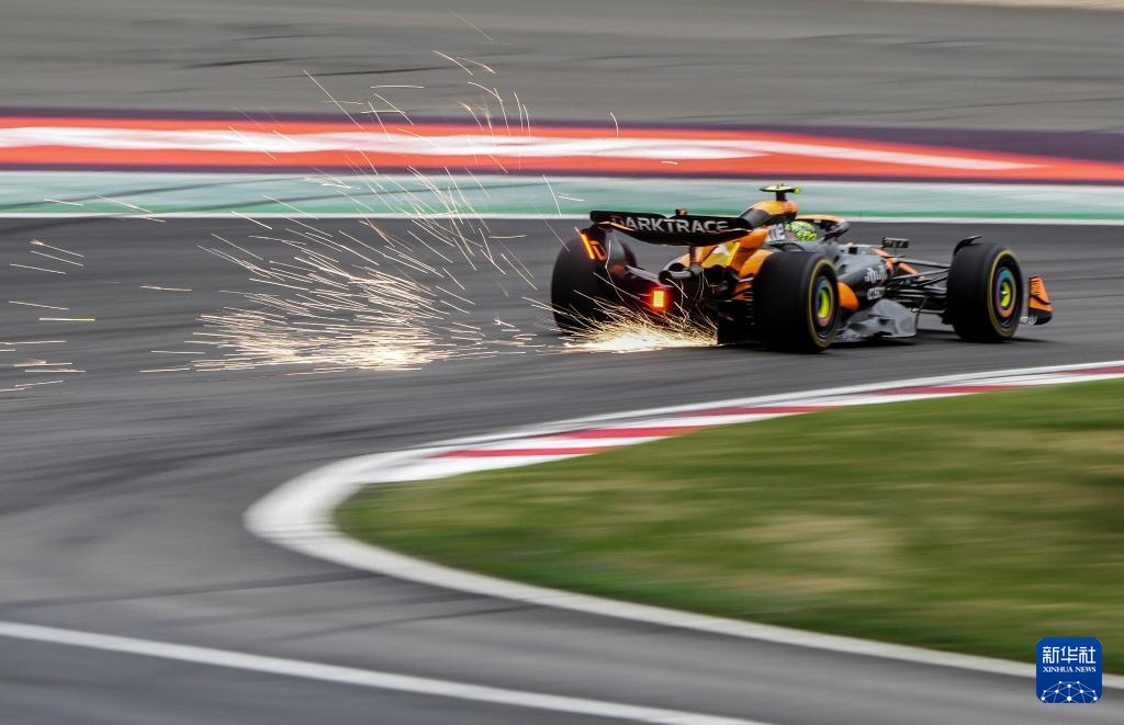 4月19日,迈凯伦车队英国车手诺里斯在比赛中。他最终排名第一。新华社记者 贺长山 摄