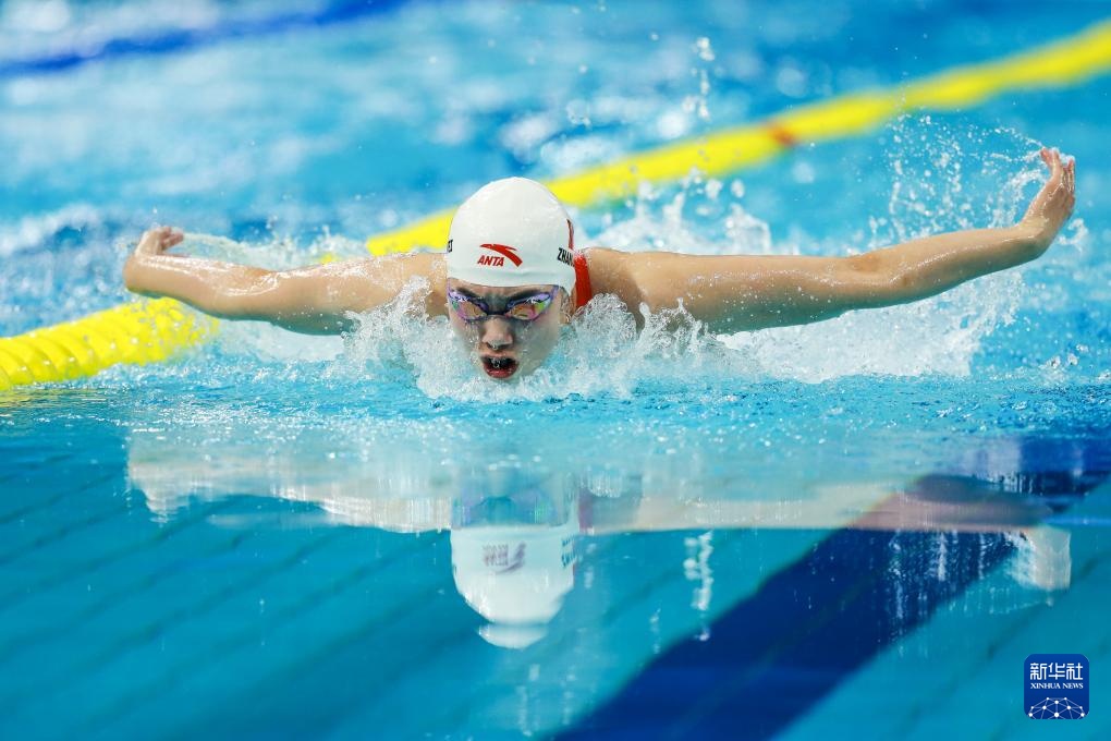 4月19日,浙江寿仙谷队选手余依婷在女子100米蝶泳半决赛中。新华社发(彭志刚摄)