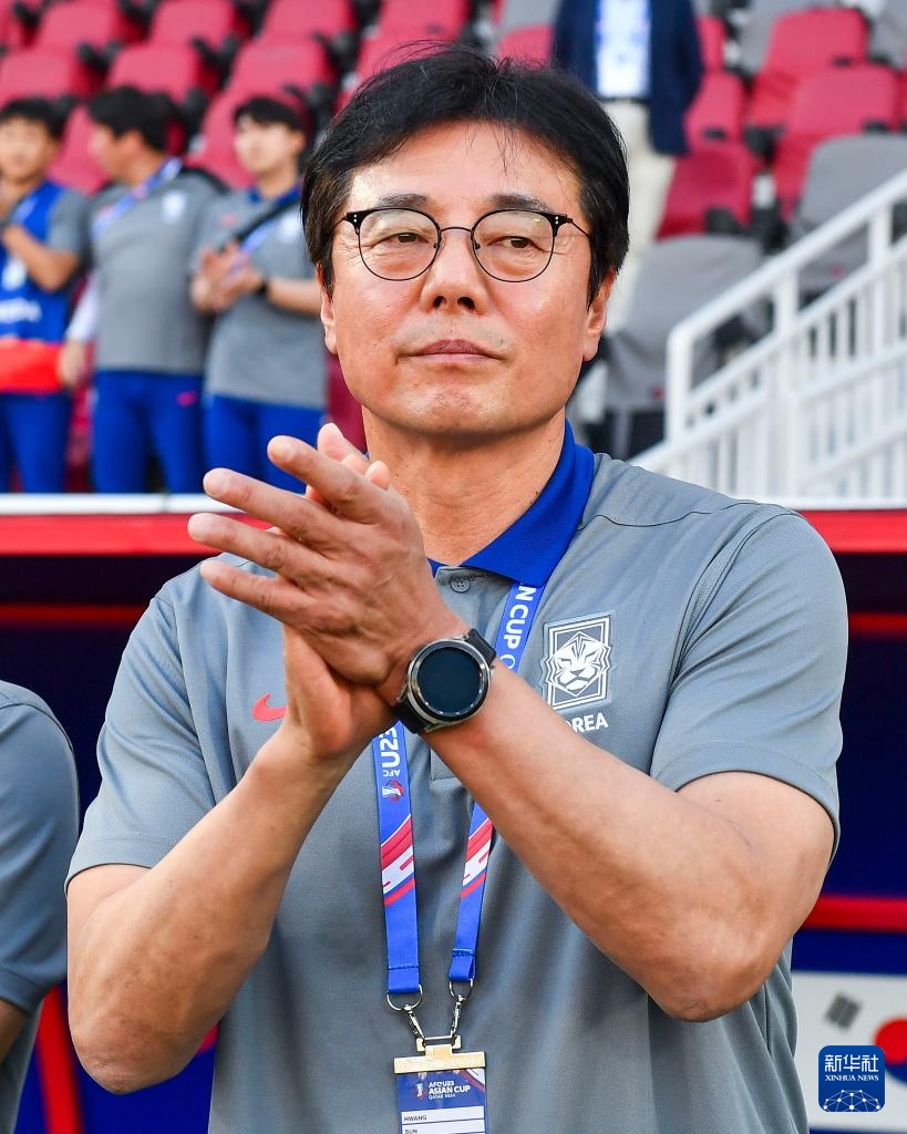 4月19日,韩国队主教练黄善洪在场边观战。新华社发(尼库摄)
